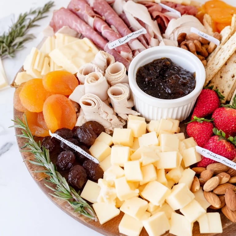 - Group your strawberry halves, grapes, and dried apricots in small piles rather than scattering them randomly. This creates visual definition and makes it easy for guests to understand which memory they're about to taste. Leave a little negative space—emptiness can be as beautiful as fullness.