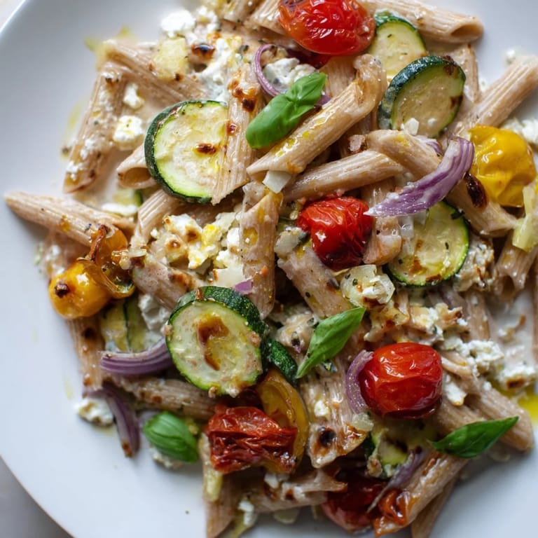 Save The first time I made the viral feta pasta, I stood in my kitchen watching the cheese melt into a creamy puddle, mesmerized. But halfway through eating it, I felt a little heavy, a little guilty about all that richness. So I started tinkering—swapping regular pasta for whole grain, loading up the pan with roasted vegetables that would add texture and nutrition. What emerged was something that felt both lighter and more satisfying, like I'd finally made the dish my body actually wanted.