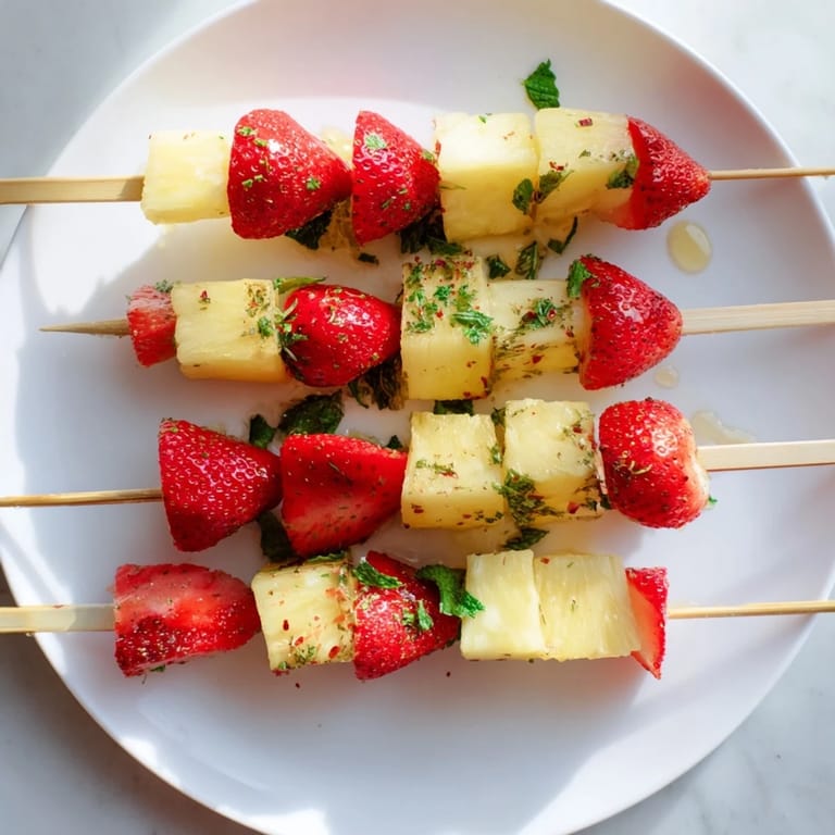 - Thread pineapple chunks and strawberry halves alternately onto wooden or metal skewers creating a colorful pattern.