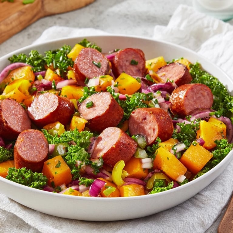 - Return the browned kielbasa to the skillet. Toss everything together and cook for another 2–3 minutes to heat through and meld flavors. Adjust seasoning to taste.