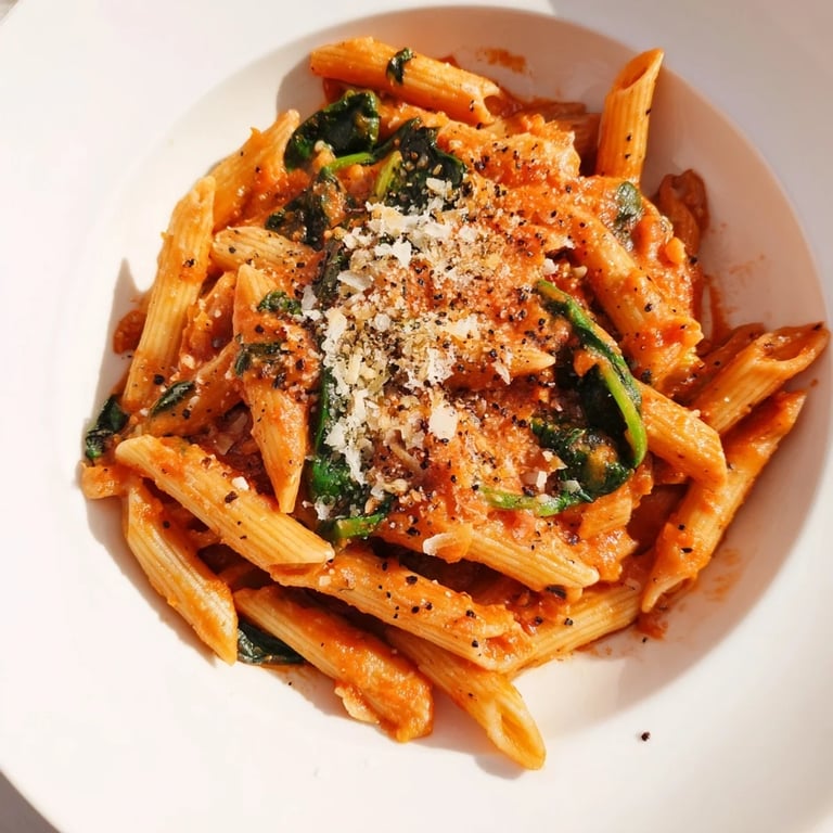 This is the meal I make when I have twenty minutes and need something that tastes intentional, not desperate. The combination of jarred sauce and fresh spinach means you're not choosing between quick and good—you're getting both, which is maybe the whole point of learning to cook well. There's something freeing about a dish this straightforward, because you can focus on technique and presence instead of complexity.