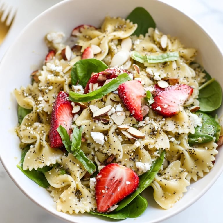 Save The first time I brought this pasta salad to a Memorial Day potluck, my friend Sarah actually asked for the recipe before she even finished her first bite. We were sitting on her back porch, the air getting that perfect evening warmth, and she kept pointing at her bowl with her fork going 'what IS this dressing?' I'd thrown it together on a whim that morning, terrified the strawberries would get weird or the spinach would wilt. Instead, it was this bright, happy accident that suddenly made me the person who 'knows how to make those fancy salads.'