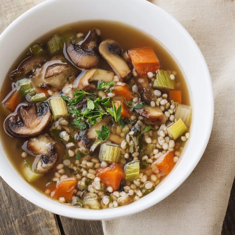 Save A rustic and hearty soup blending wild mushrooms, tender barley, and aromatic vegetables in a single pot—perfect for cozy evenings and nourishing, light meals.